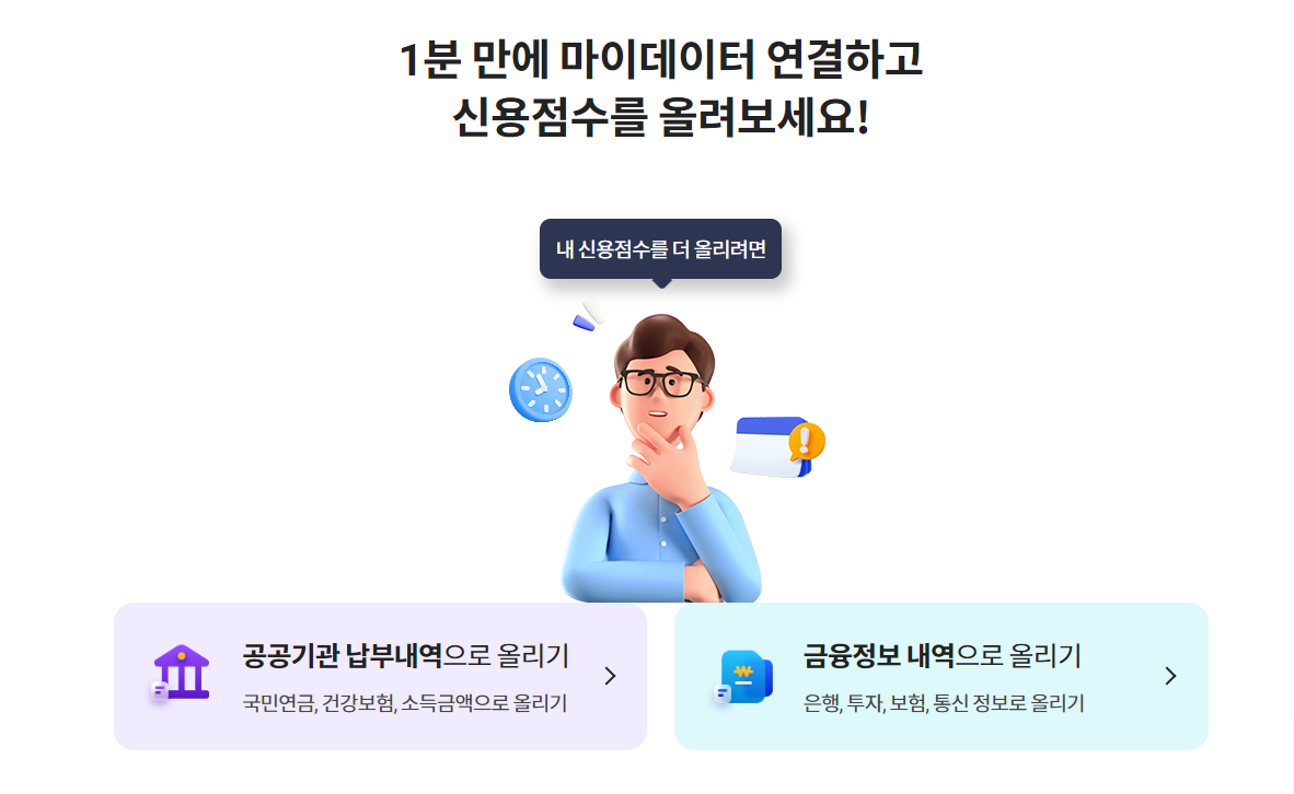 마찬가지로 개인의 금융정보 이력을 설명해주고, 신용점수를 알려줍니다. 본인의 신용점수 평가 요인과 함께 구체적으로 점수를 보완할 수 있는 방법을 알려주기 때문에 신용점수 관리에 도움을 받으실 수 있습니다.